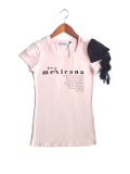 Blusa de algodón strech con estampado en color negro, y detalle en manga con moño de rebozo en color negro.
